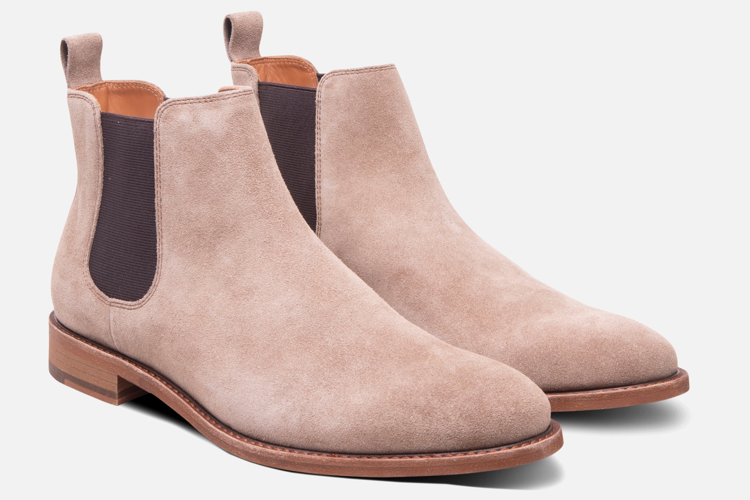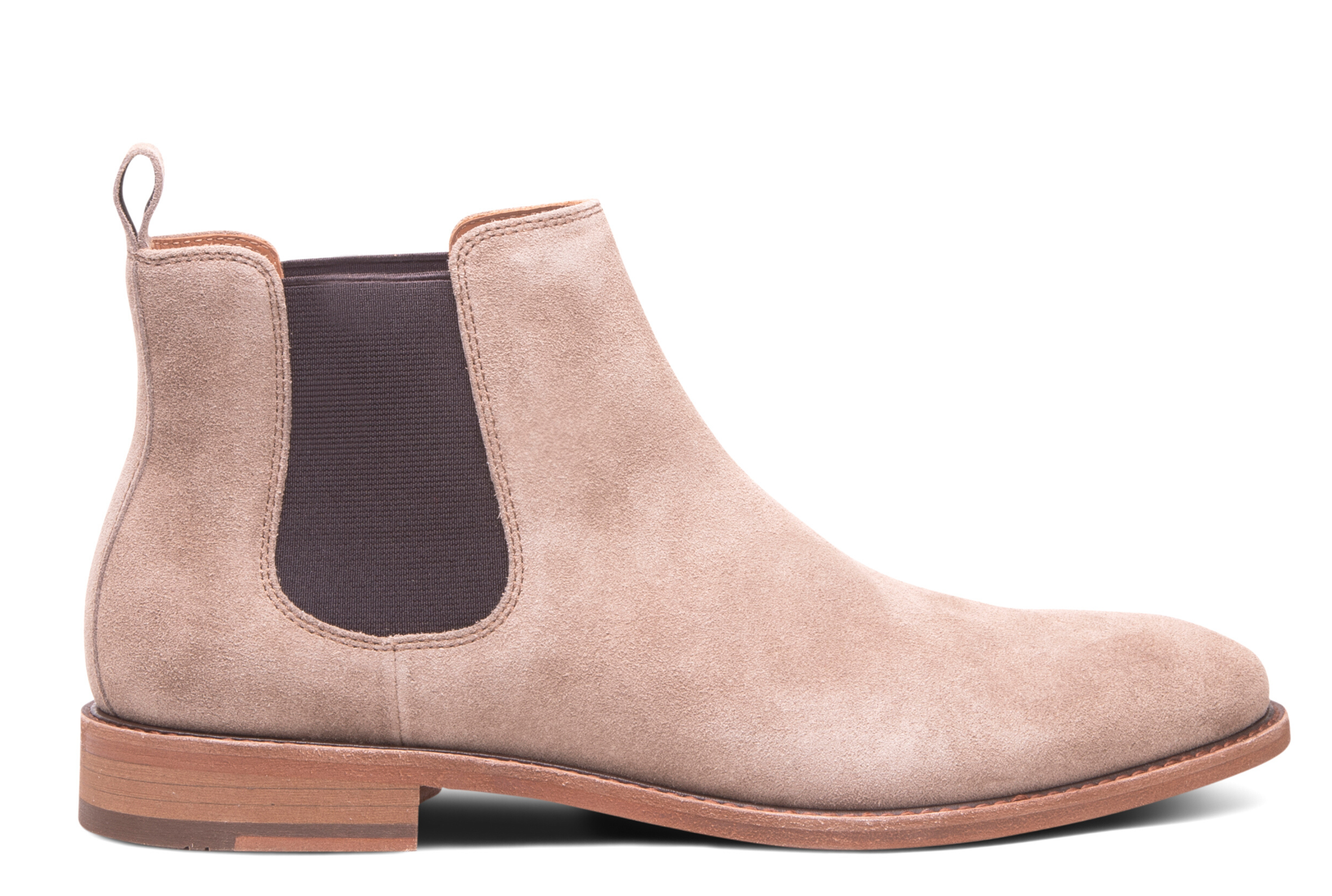 A sleek Chelsea boot made with a soft, premium suede upper and calfskin lined for breathability.   A removable OrthoLite® cushioned insole, and twin gore webbing that makes slipping on a cinch.  Full leather outsole with Blake construction makes this well crafted boot resoleable.  Genuine leather welt for added detail and flexibility.