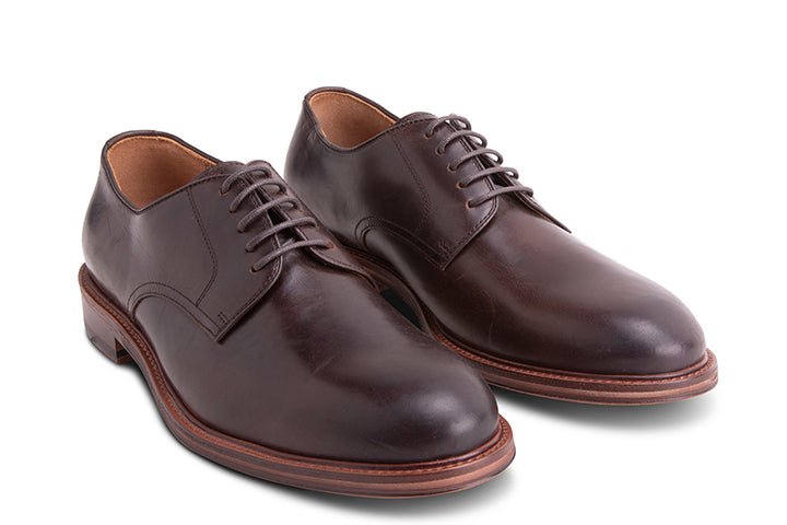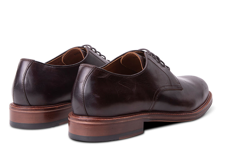 A rugged derby with a tall, round toe box and stack leather sole. Comfortable right out of the box, and great if you're experimenting with a fuller cut pant, with a wider leg. Alternately, if you want to create a proportional contrast, this shoe goes great with a slim cut trouser, too.