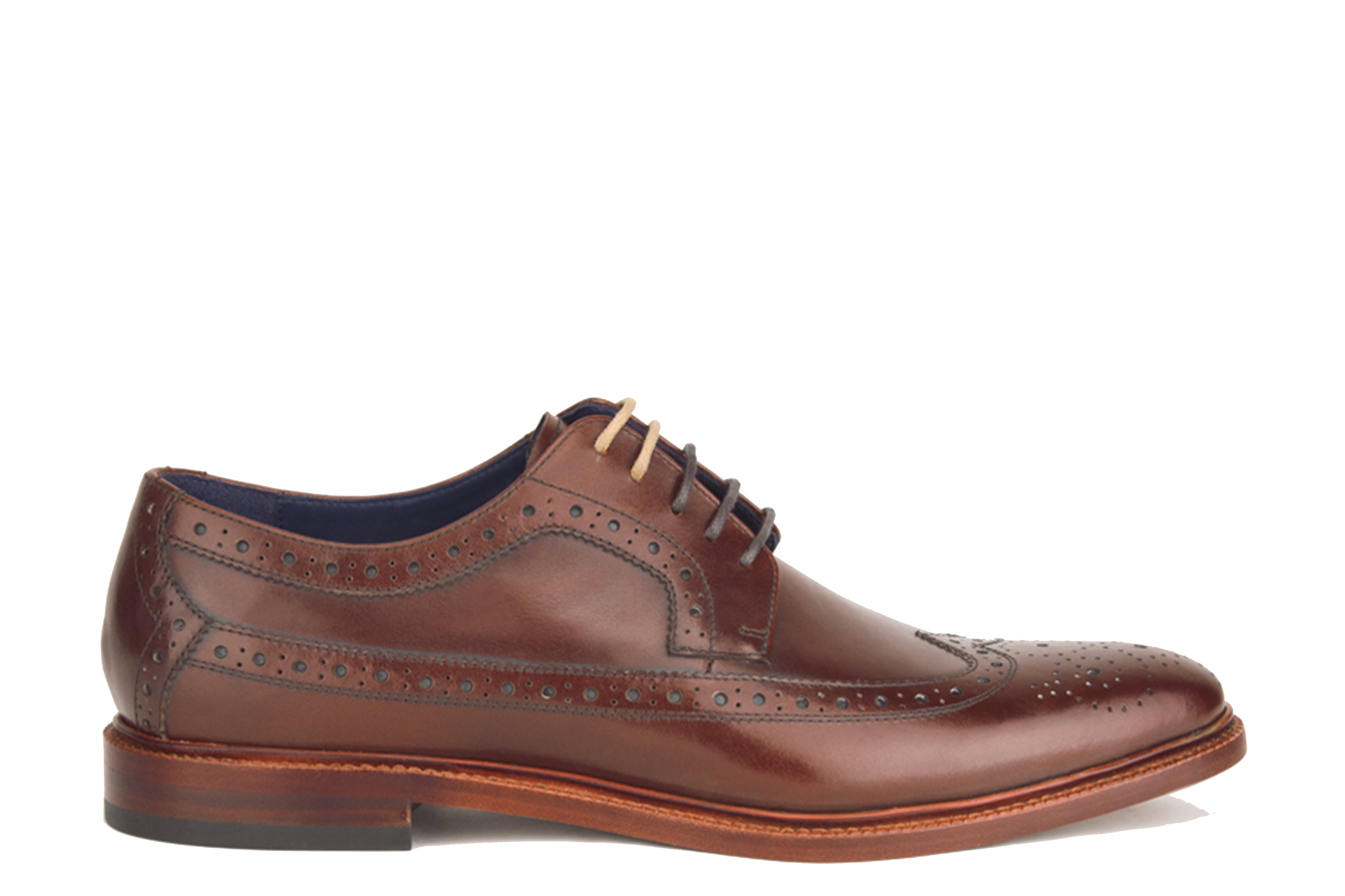 The Saddletone, chestnut lace-up derby shoes from Winthrop Shoes are made in Italy with premium leather. It's all about the details with the Saddletone wingtip Derby. The contrast lace option draws the eye, while the broguing detail polishes off your head to toe look.
